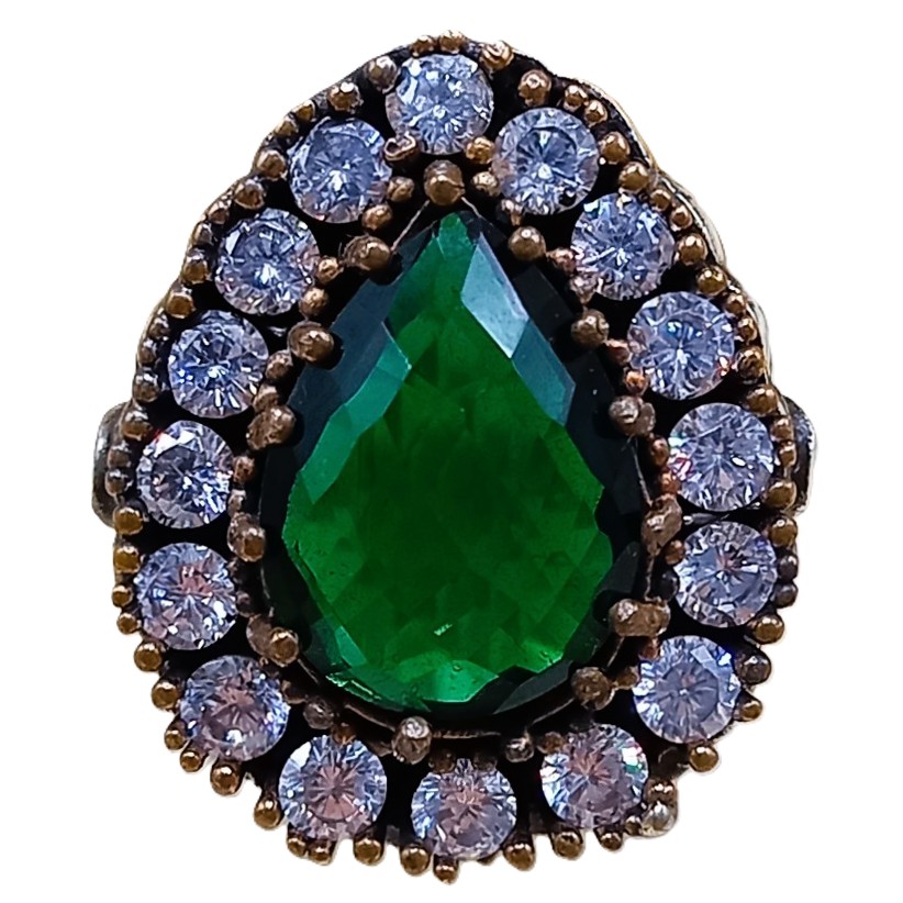 Máxi Anel Turco confeccionado em Prata 925 e Bronze, cravejado de zircônias Verde e Cristal