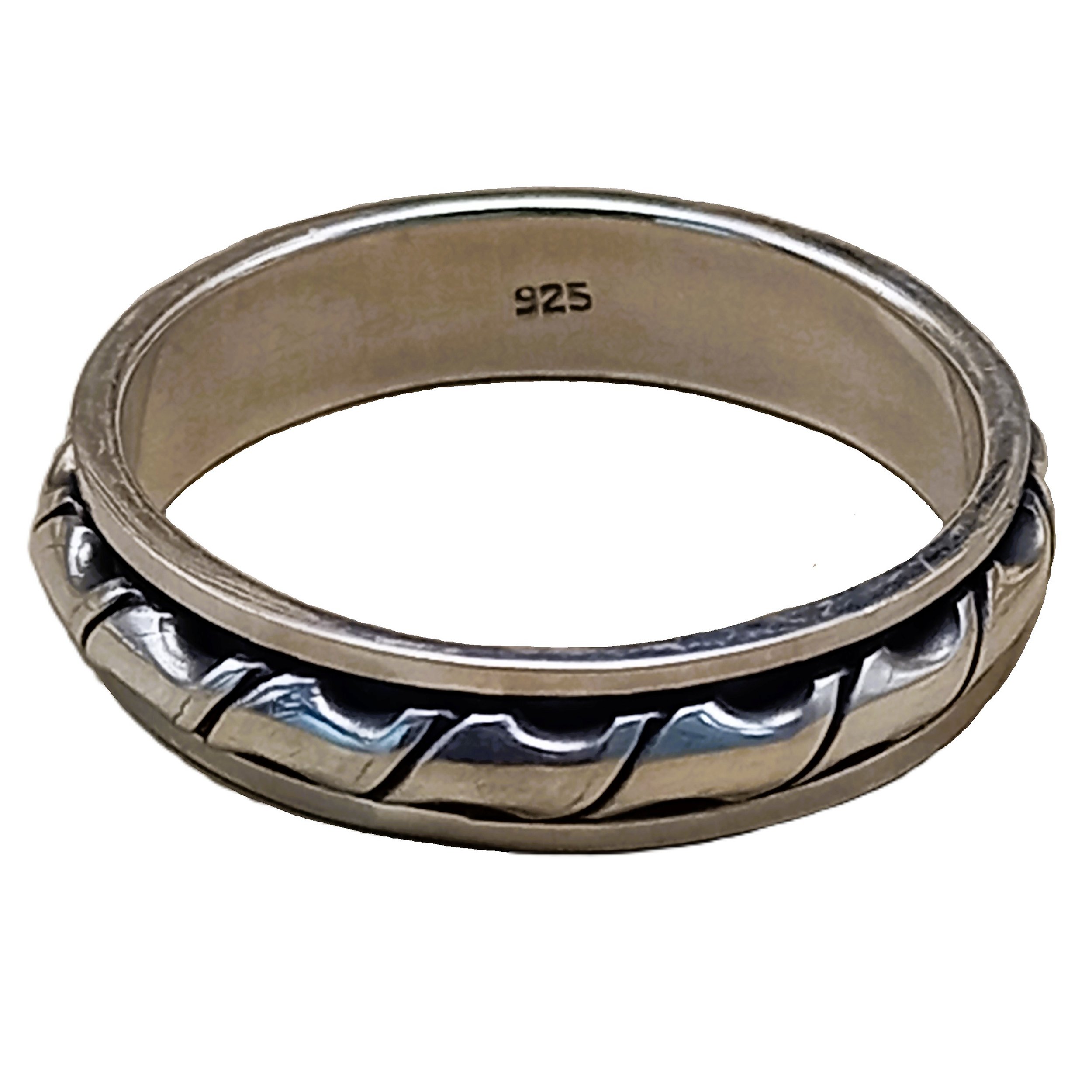 Anel confeccionado em Prata 925 com sobreposição trabalhada giratória