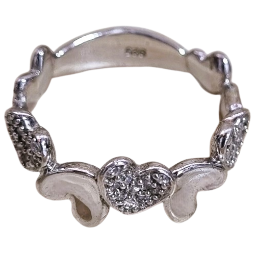 Anel com Corações intercalados em lisos e cravejados de zircônias na cor cristal, confeccionado em prata 925