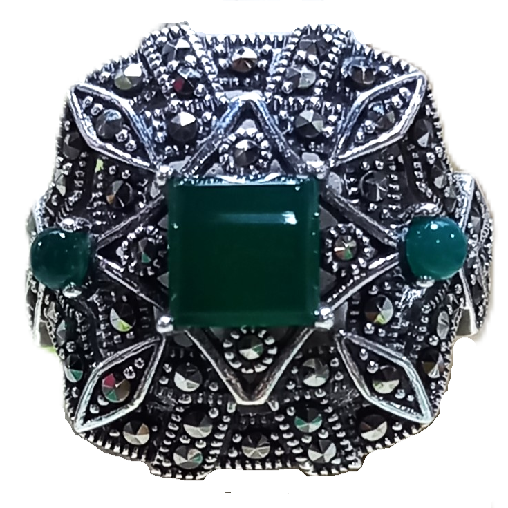 Anel confeccionado em Prata 925, cravejado de Marcassitas e Pedra Ágata Natural