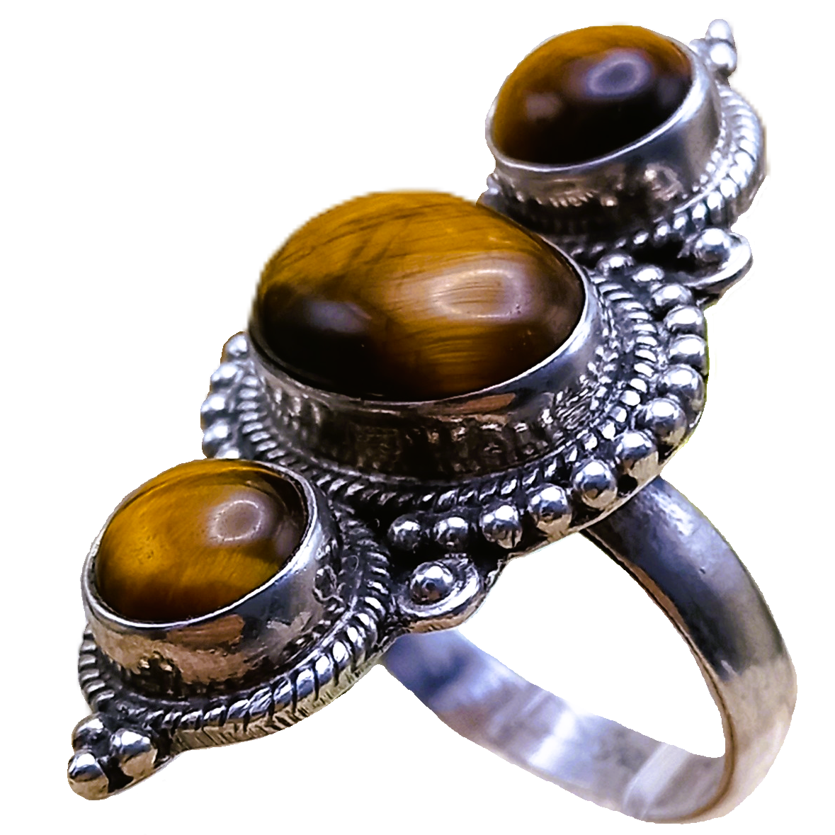 Anel confeccionado em Prata 925 com Pedras Naturais Olho de Tigre