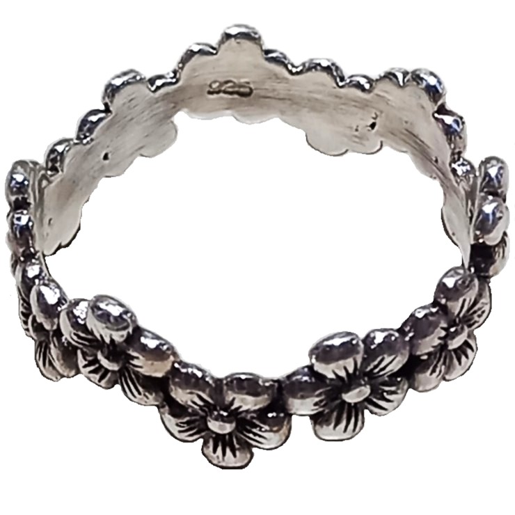 Anel confeccionado em Prata 925, trabalhado em flores com acabamento polido e envelhecido