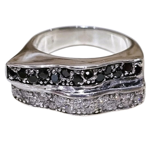 Anel confeccionado em Prata 925, com detalhes em zircônias nas cores preta e cristal