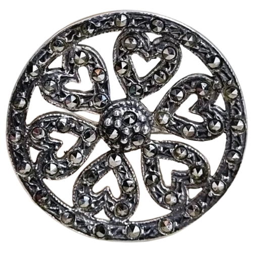 Anel Mandala Corações confeccionado em Prata 925, com marcassitas incrustadas e acabameto envelhecido