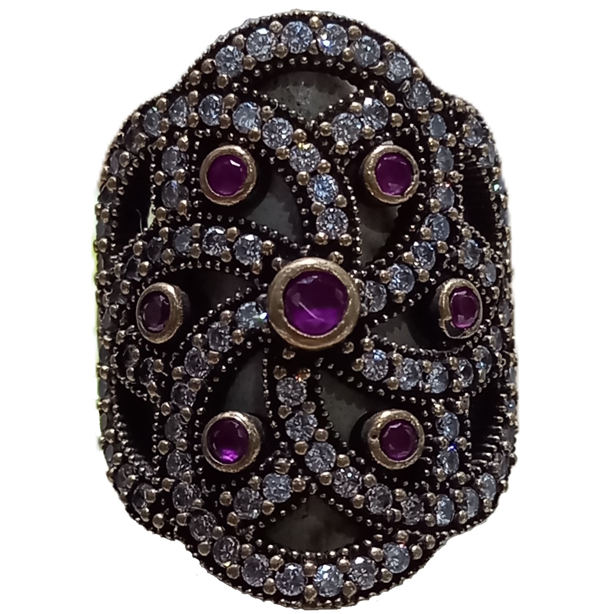 Anel Turco, confeccionado em Prata 925 e Bronze, cravejado de zircônias nas cores rubi e cristal