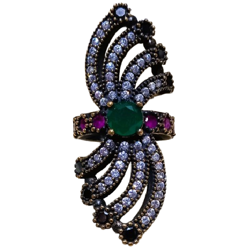 Anel confeccionado em Prata 925 e Bronze, cravejado de Zircônias nas Cores Pink, Azul Marinho, Cristal e Verde