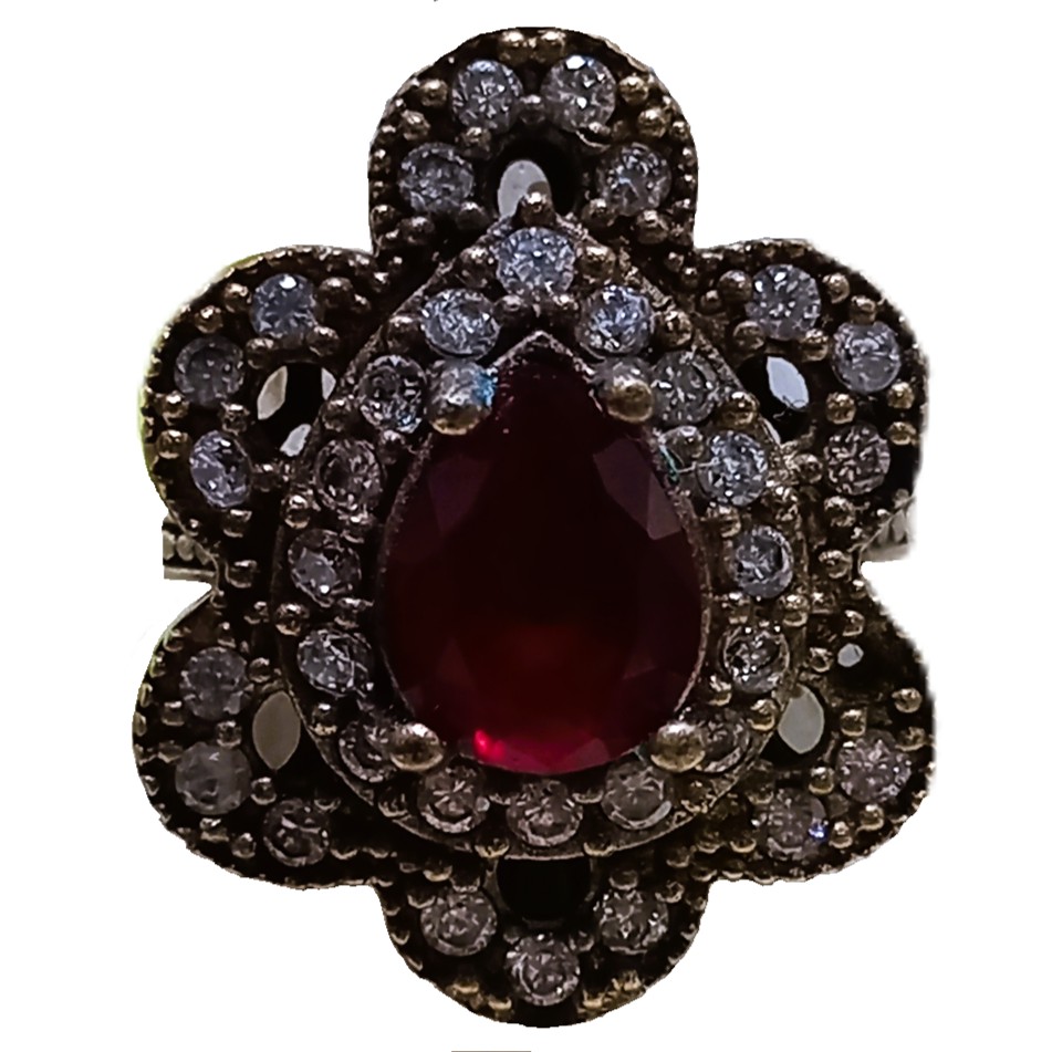 Anel confeccionado em Prata 925 e Bronze, cravejado de Zircônias nas Cores Vermelha e Cristal