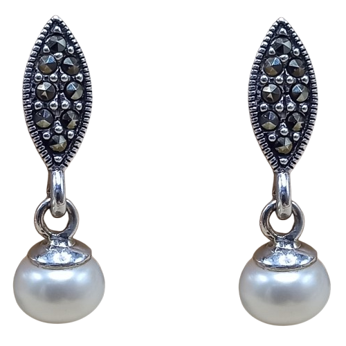 Par de Brincos confeccionados em Prata 925 cravejado de Marcassitas e Pérola