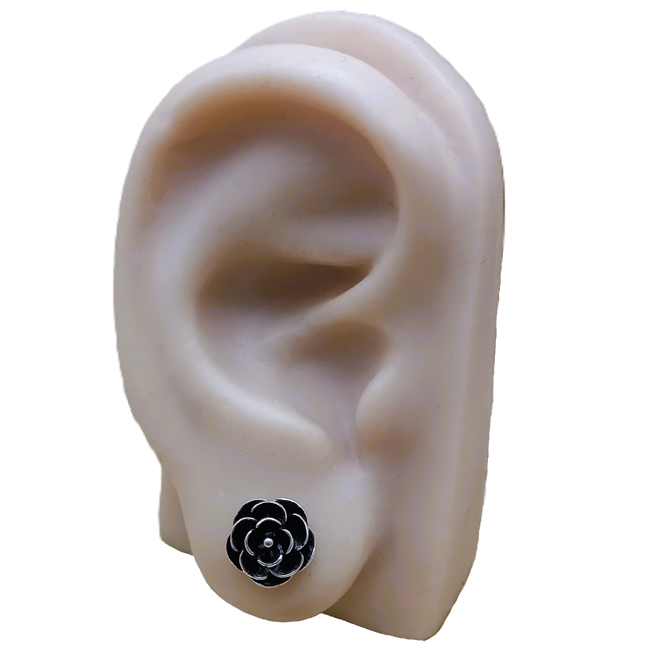 Par de Brincos confeccionados em Prata 925 com detalhes em resina negra