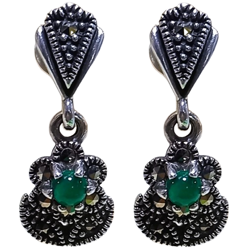Par de Brincos confeccionado em Prata 925, com Marcassitas e Pedra Natural Ágata Verde