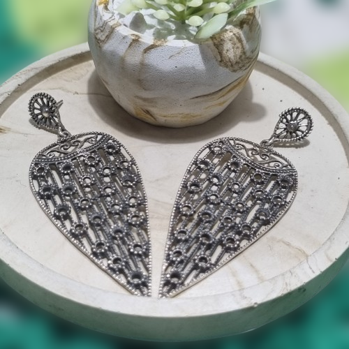 Par de Brincos Grande em formato gota invertida, confeccionado em Prata 925