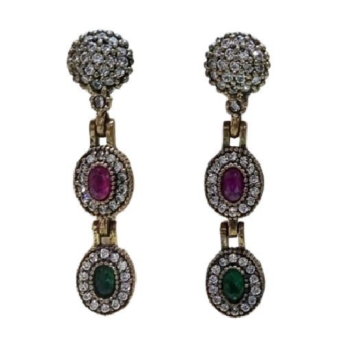 Par de Brincos confeccionado em Prata 925 e Bronze, cravejado de zircônias nas cores Verde, Pink e Cristal