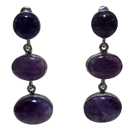 Par de Brincos confeccionado em Prata 925 e Pedras Ametista Natural