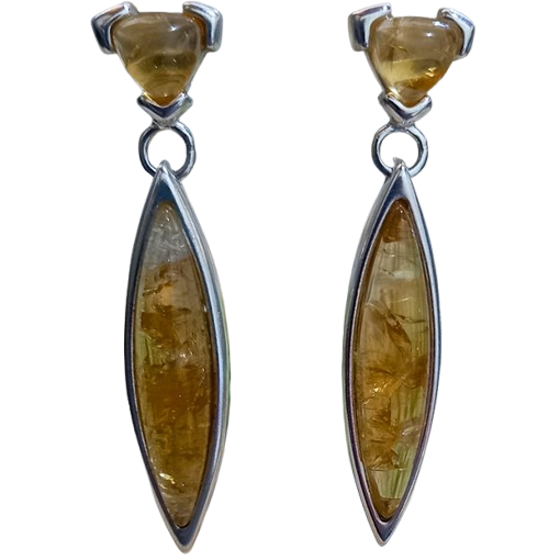 Par de Brincos confeccionado em Prata 925 e Pedra Citrino Natural