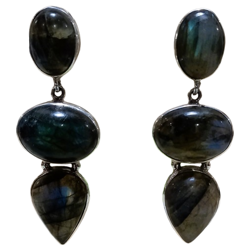 Par de brincos confeccionado em Prata 925 e Pedra Labradorita Natural