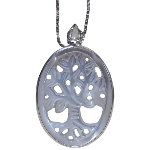 Pingente em Prata 925, Árvore da vida de Madrepérola Natural