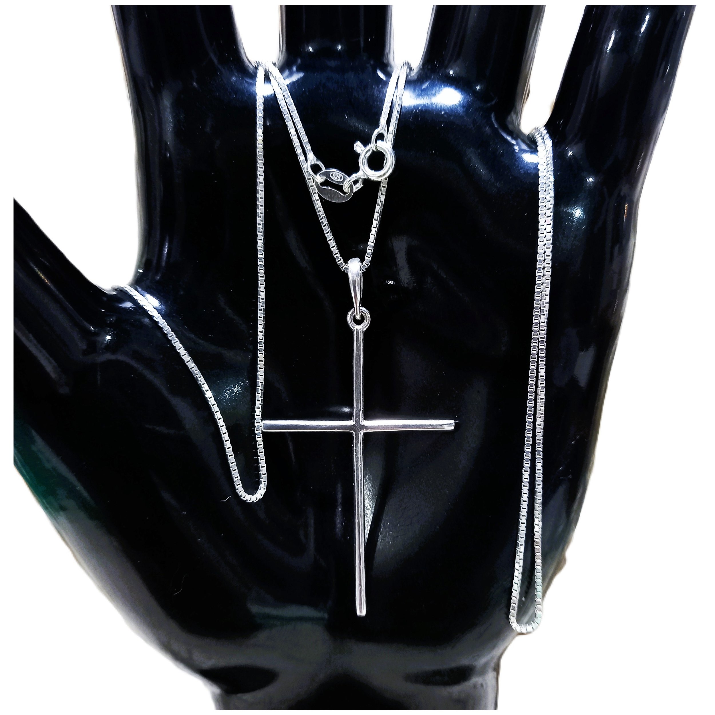 Pingente Cruz Palito com Corrente Veneziana confeccionados em Prata 925