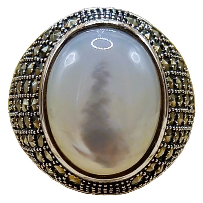 Anel confeccionados em Prata 925, cravejado de Marcassitas e Madrepérola Natural
