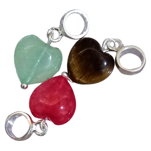 Pingente Berloque confeccionado em Prata 925 e Pedra Natural Jade Verde em forma de coração