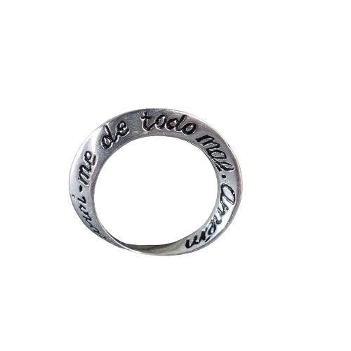 Pingente Círculo Torcido com inscrição LIVRAI-ME DE TODO MAL AMEM, confeccionado em Prata 925