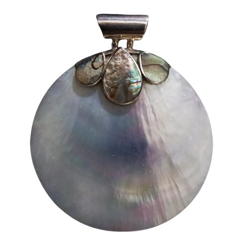 Pingente grande confeccionado em Prata 925, Madrepérola e detalhes em Abalone