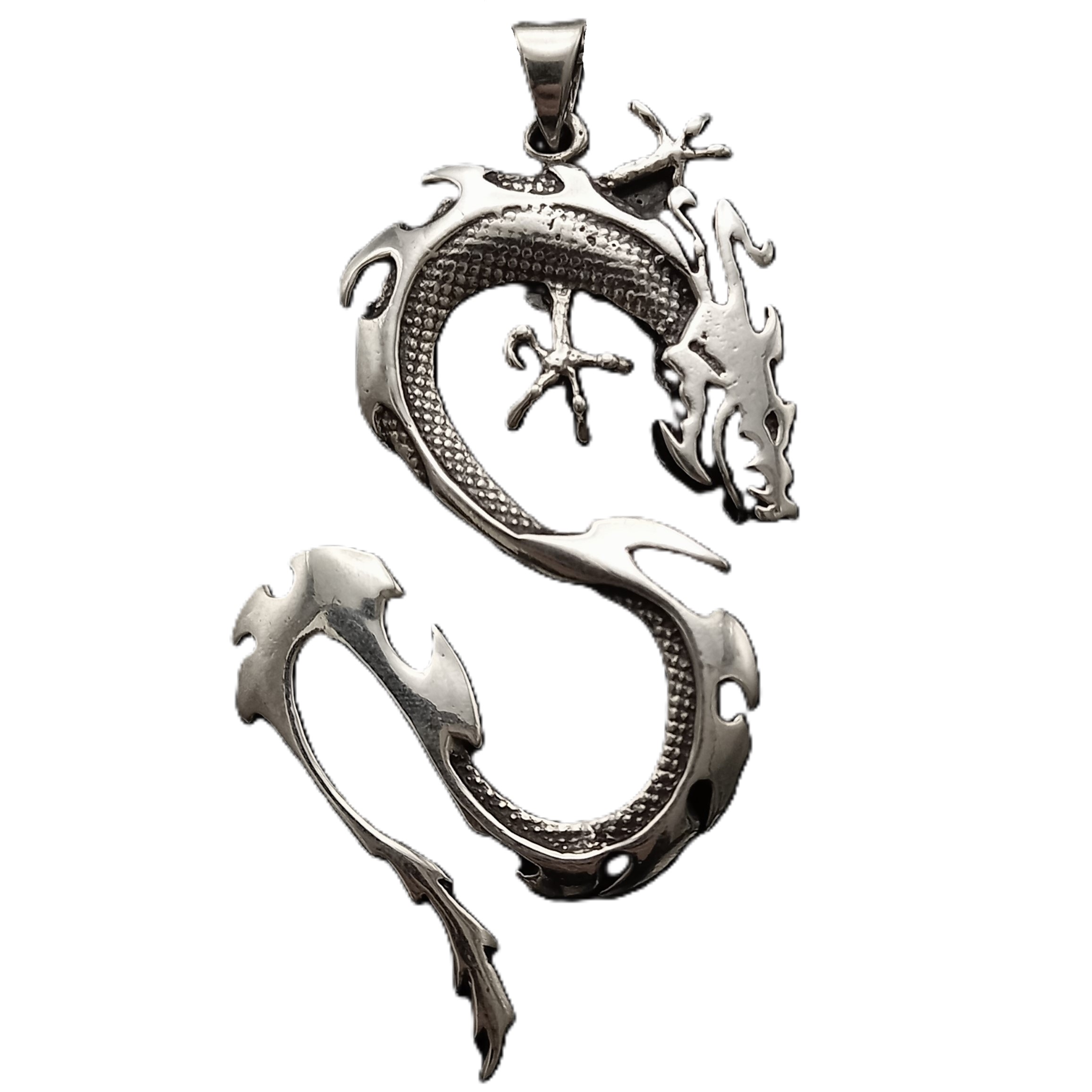 Pingente Dragão confeccionado em Prata 925 Acabamento Envelhecido e Polido