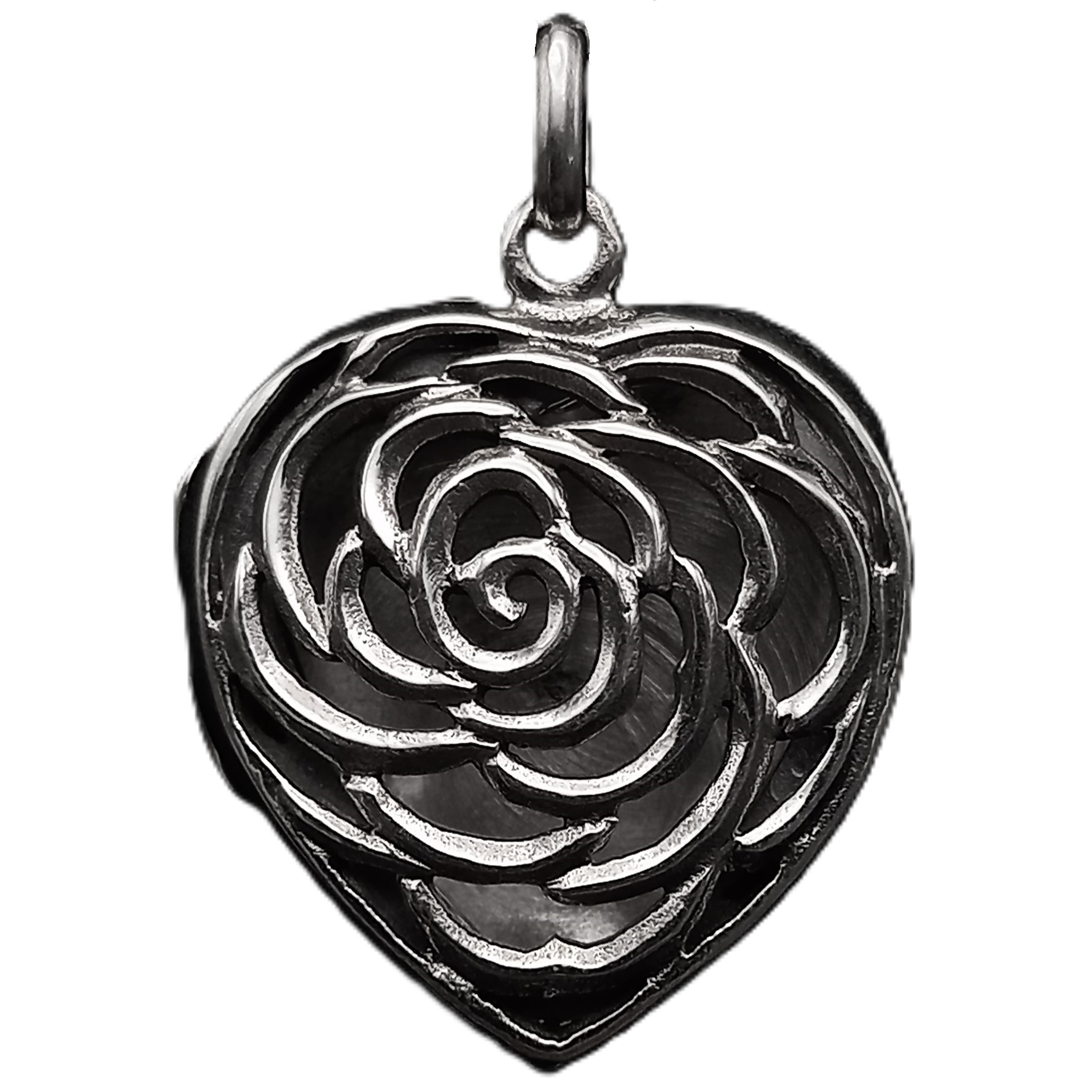 Pingente Relicário ou Difusor confeccionado em Prata 925 com trabalho vazado em rosa