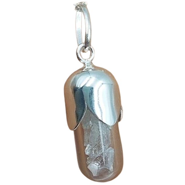 Pingente confeccionado em Prata 925, capsula acrílica e sal grosso